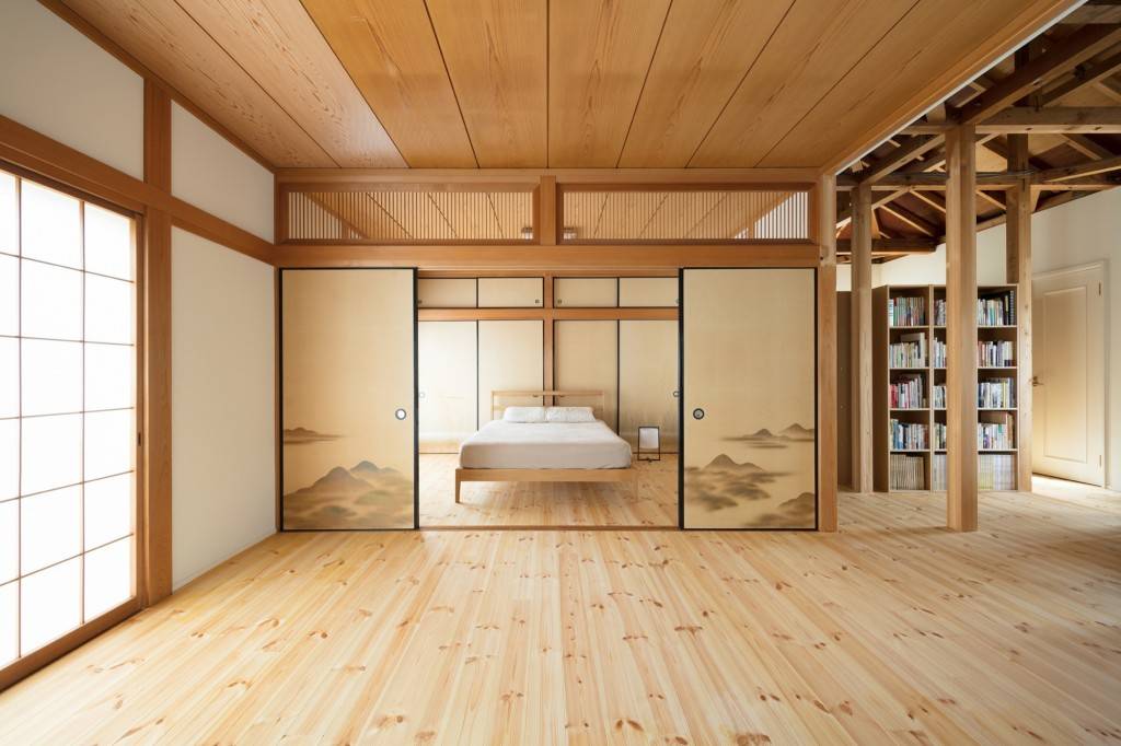 南側の半分は、既存の天井と襖をそのまま残し、寝室として家の一番奥まった場所となっています。
