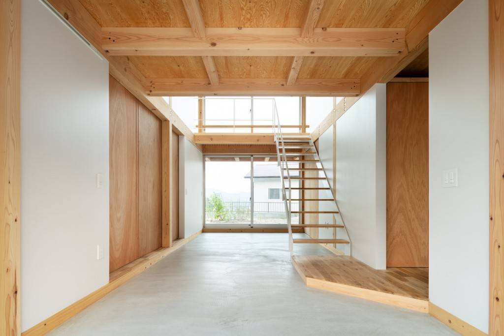 内部は、モルタル金ゴテ、板間、すのこ、畳敷きなど、生活する居場所に応じて床の素材を設えています。それらの場所がすべて回りの風景との繋がりの中でできています。