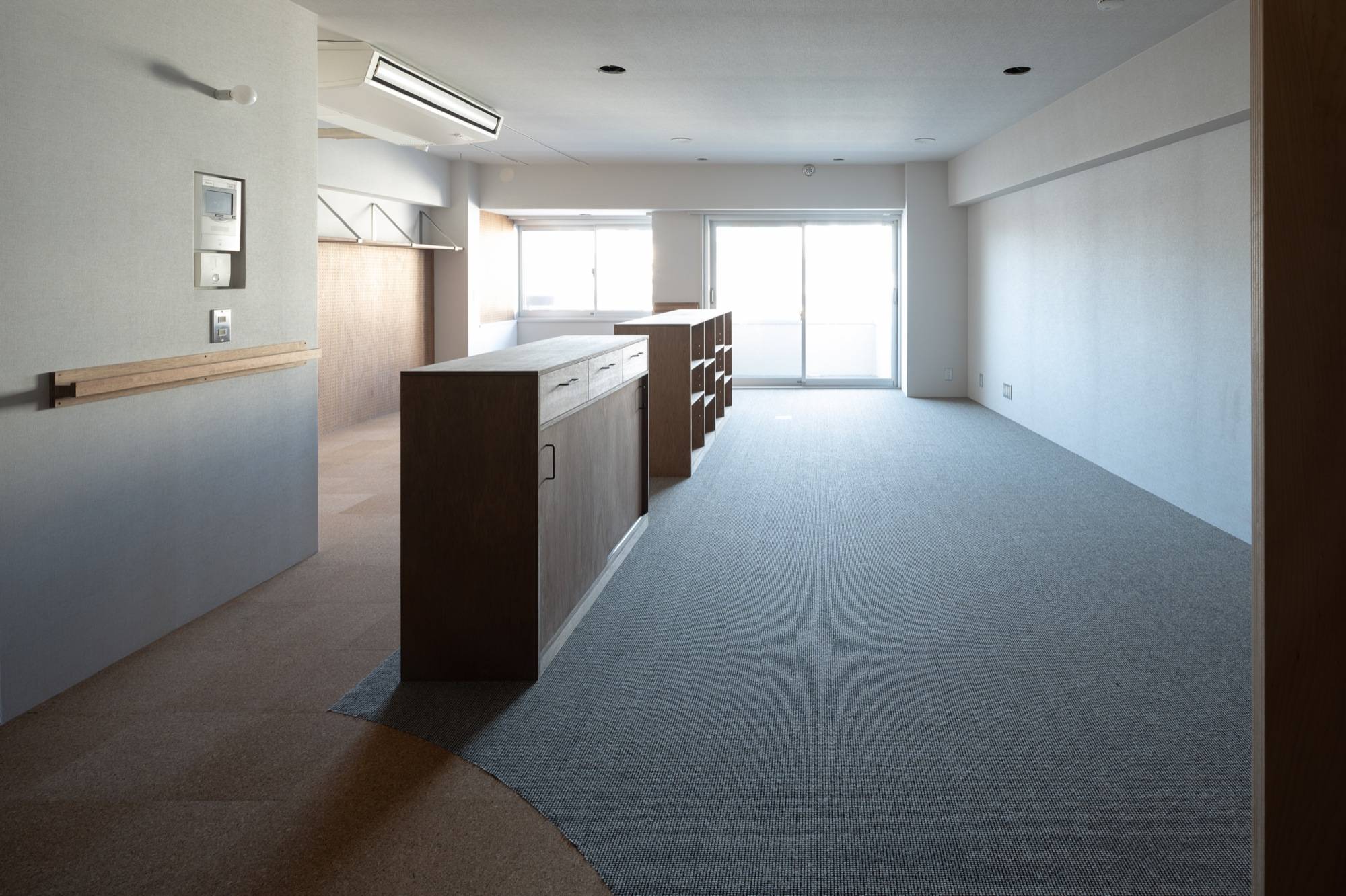 それは、置き場所を変えられる島のように点在する家具であったり、荒々しいスケルトンとなった躯体を和らげる仕上げになっていきました。