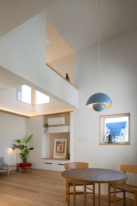 LDKでは場所ごとに 天井の高さが変位し、また光の取り入れ方による空間の明暗にメリハリを付け、 それぞれキャラクターが異なる、多様で愉しい空間が連なっています。