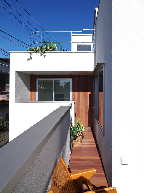 加えてバルコニーやロフト、ルーフテラスなど、内外の各空間が立体的に繋がり、 家族が付かず離れずの適度な距離感で、相互に気配を感じながら愉しく暮らせるような住空間となっています。