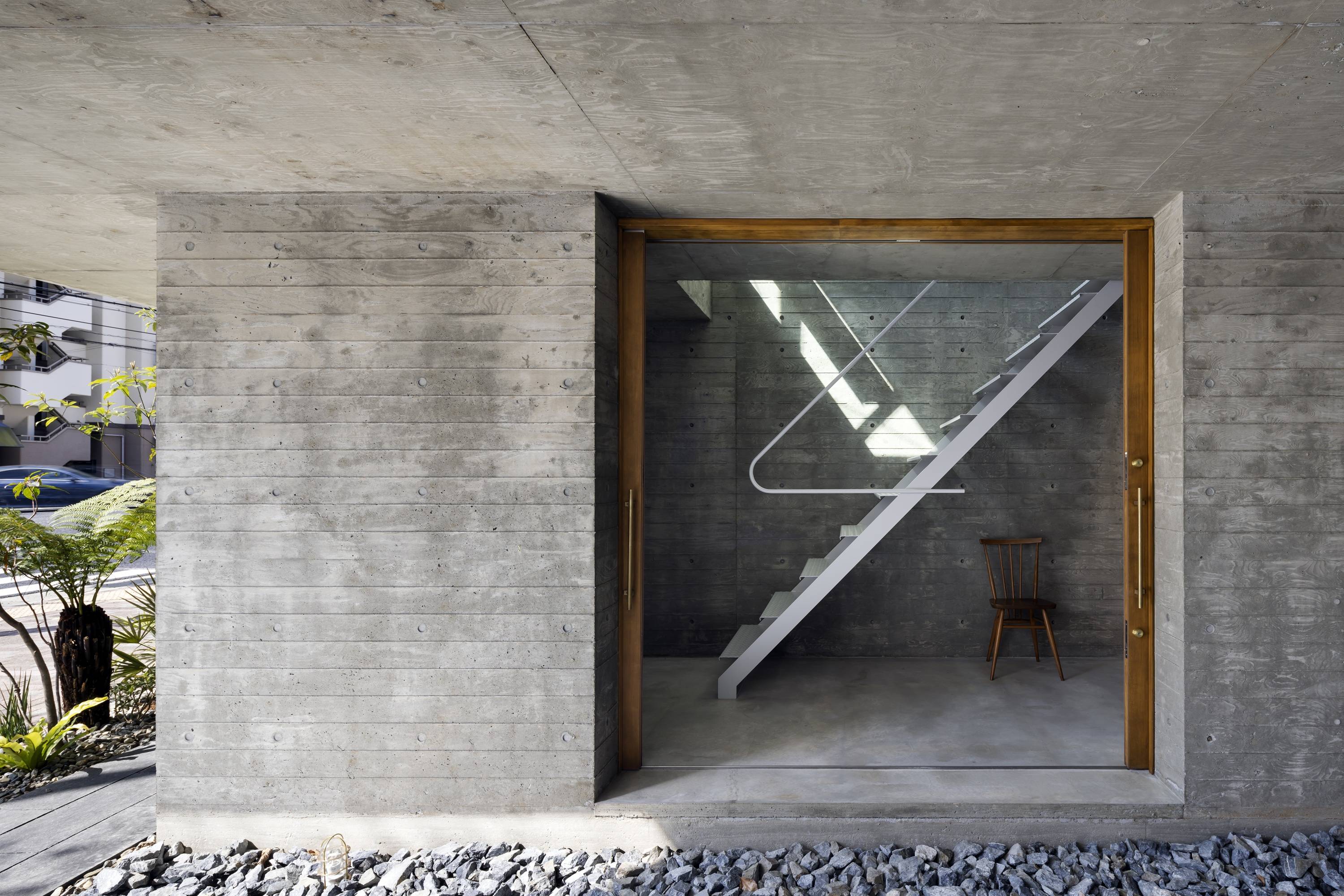 2階の南側、東側に大きく開口をとり、光や風を内部に十分取り入れながらも、「余白」が街との緩衝帯となり、両者を緩やかに関係づける。敷地は準防火地域内であるため、内外の境界には燃え代を含む化粧柱を配しているが、その比較的広い柱幅を利用し、サッシの枠、縦框が内部からは見えない納まりとした。さらに耐力壁には鉄筋ブレースを採用、内装はモルタル系の左官仕上げとする等、内外を差異化させる要素を可能な限り削ぎ落し、街、余白、内部がシームレスな関係となることを目指した。