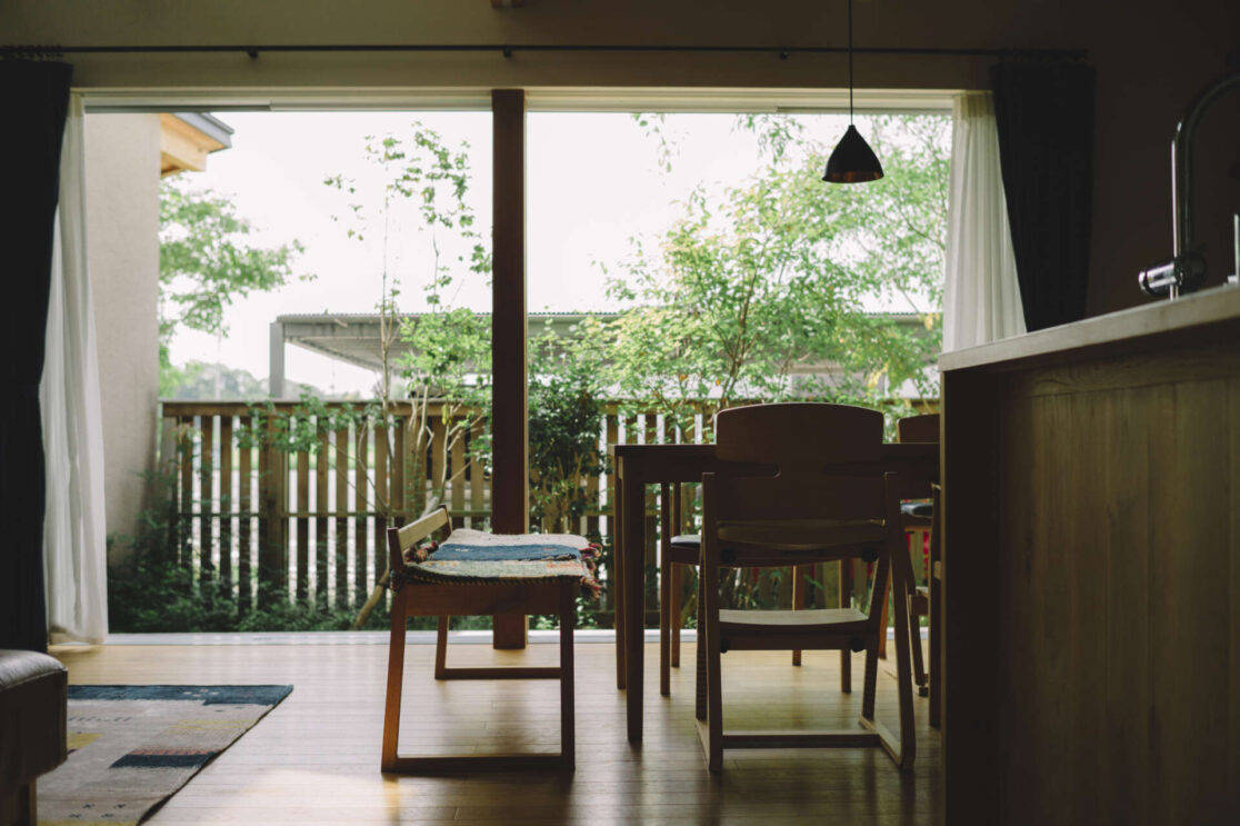 LDKに幅広の全開口サッシを設けて庭の緑をふんだんに取り込み、リラックスできる空間を設計しました。
