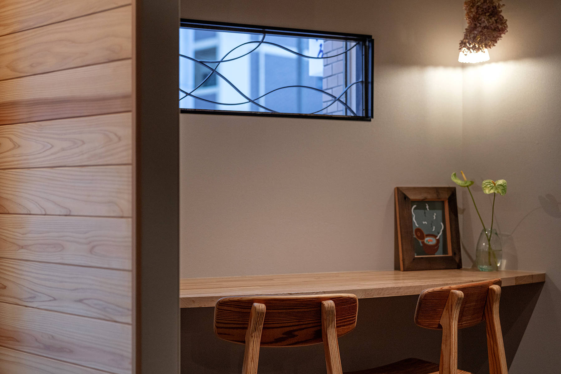 空間の表情を木質感のある落ち着いた雰囲気へと整えることで、
