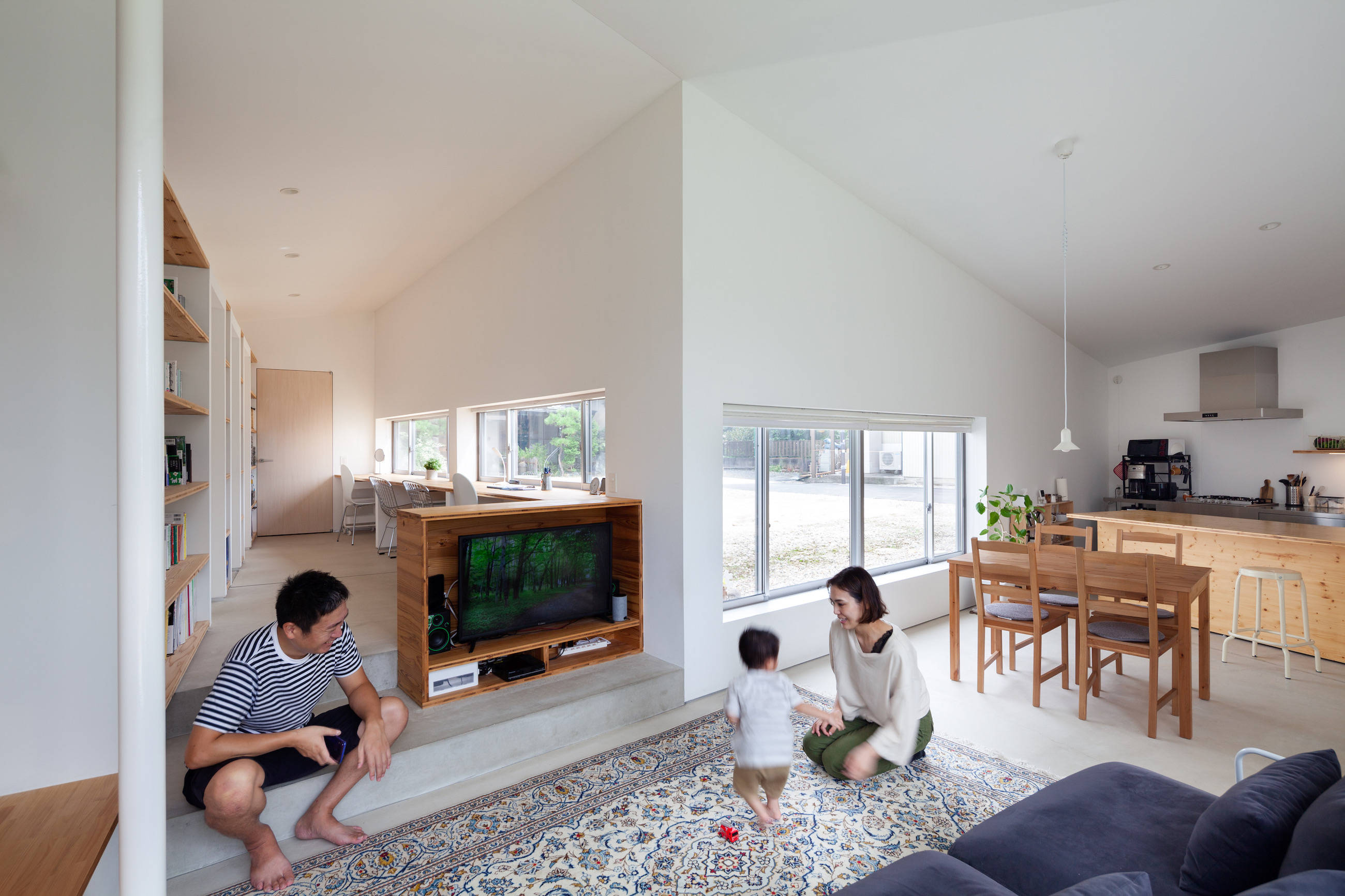道路からの距離、実家へのアプローチ、実家と繋がる庭と広場、何一つ絶対的な数字はなく、ただ過不足のない適当な距離からこの平屋は生まれました。