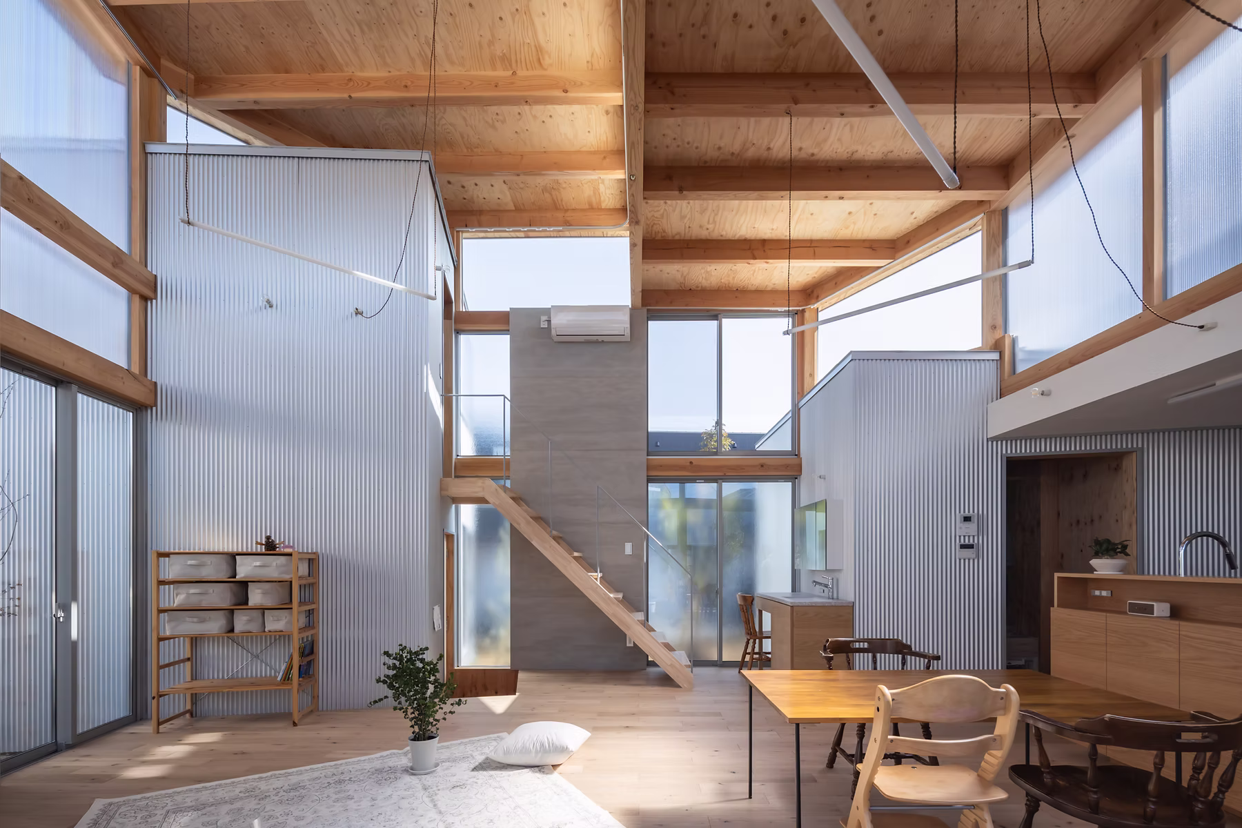 この家はある地域の片隅にありながらも、住人にとって原点であり、ここから世界がどこまでも広がっていると感じられる場所である。まちと繋がった生活空間は、まちの風景、周辺の人びとの活動、季節や空模様に影響を受け変わりゆく。それを受け入れ、観測しながら、まちと共に生きていく。