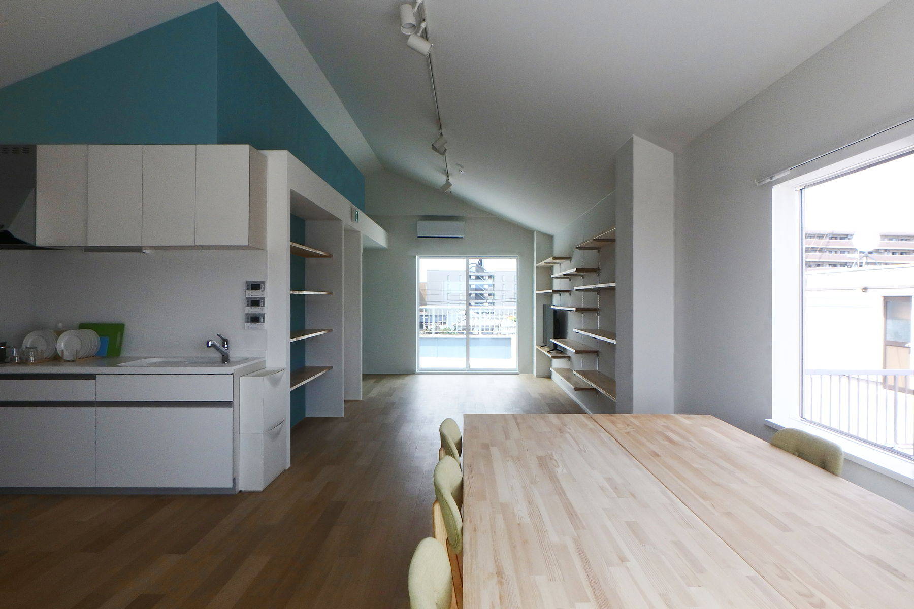 奈良市京終。クライアントが購入された築25年程の中古ビルを居住系施設として再生するプロジェクト。既存建物は菓子工場・倉庫として建設され、その後幾度かのつぎはぎリフォームを繰り返しながら事務所や従業員宿舎として運用されていたため、人荷用のエレベーターは不必要に大きく、間仕切りは防火上・避難上、危険な状態となっており再利用できない状況でした。現在の建築基準法・消防法・旅館業法を全て満足し、なおかつ事業としても成立する可能性を検証した結果、女性単身者向けシェアハウスとゲストハウスの複合建築物として設計し直すこととなりました。構造躯体を既存利用することで用途変更に伴う構造計算の遡及を避け、大きすぎるエレベーターは撤去して竪穴区画対応のホームエレベーターに変更、ゲストハウスとシェアハウスの動線を分けながら効率的にプランニングしました。高性能断熱材や樹脂サッシ、BEMS等を導入することでSII(環境共創イニシアチブ)のZEB化補助金を受け、居住性能を高めつつ事業コストの大幅な圧縮にも成功しています。