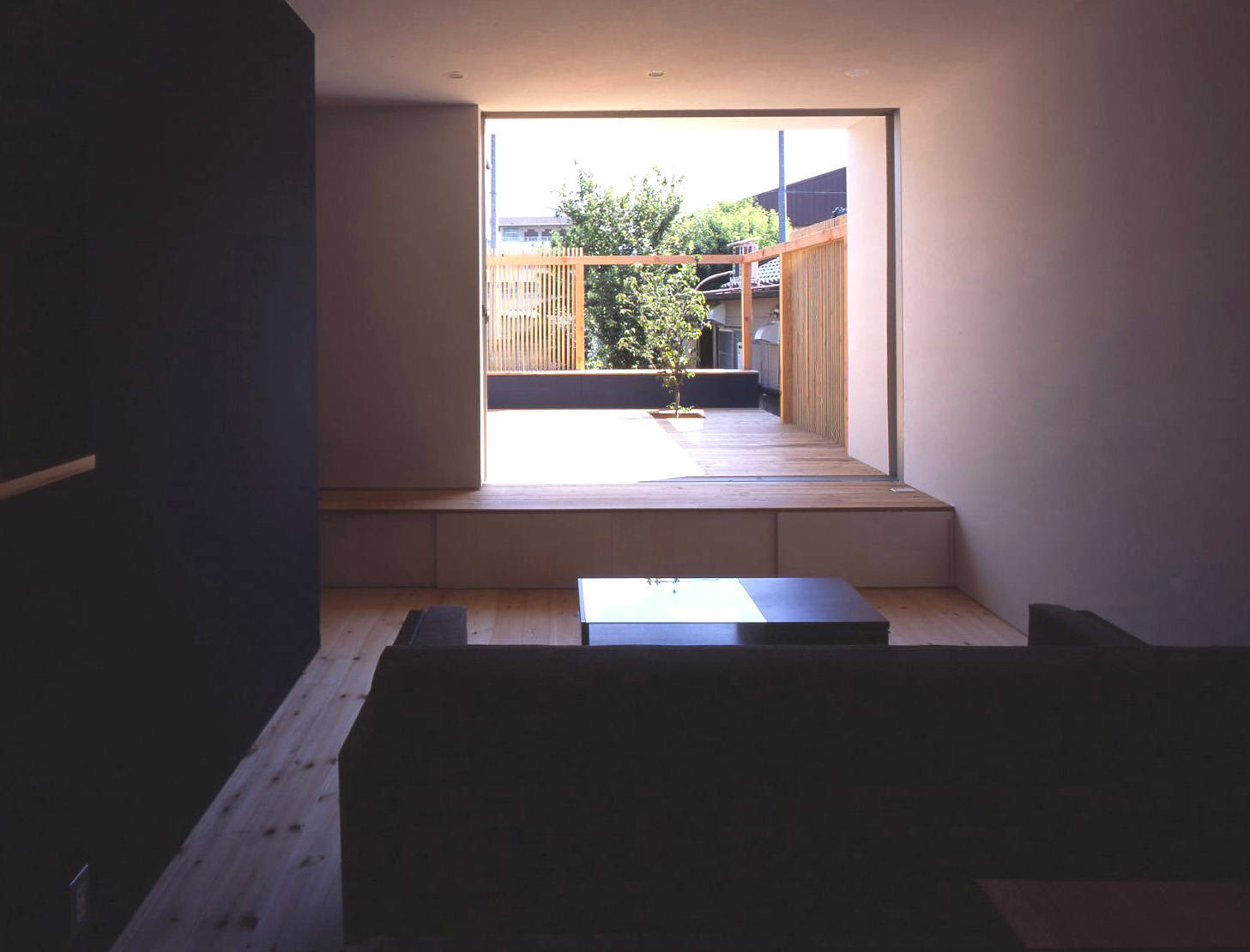 ・ 一歩踏み込むとそのままテラスまで延びる縁台的ホール