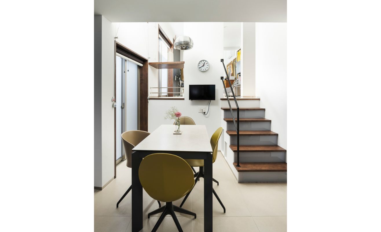 事例>スキップフロアの空間をつなぐベンチソファ兼収納