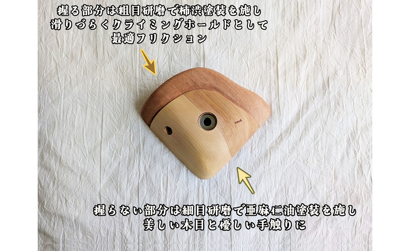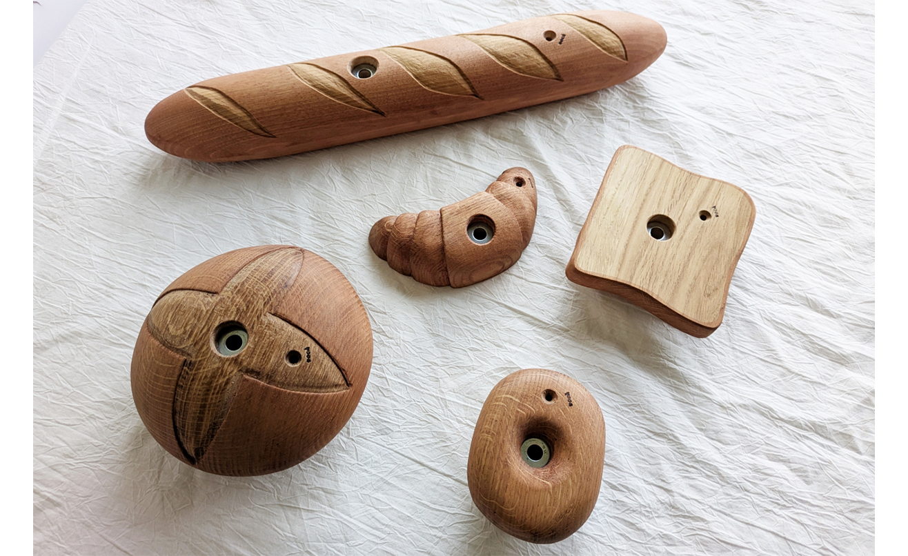 一つ一つ手作業で仕上げられたクライミングホールドは、木の美しさと機能性を高いレベルで両立させた優れもの。