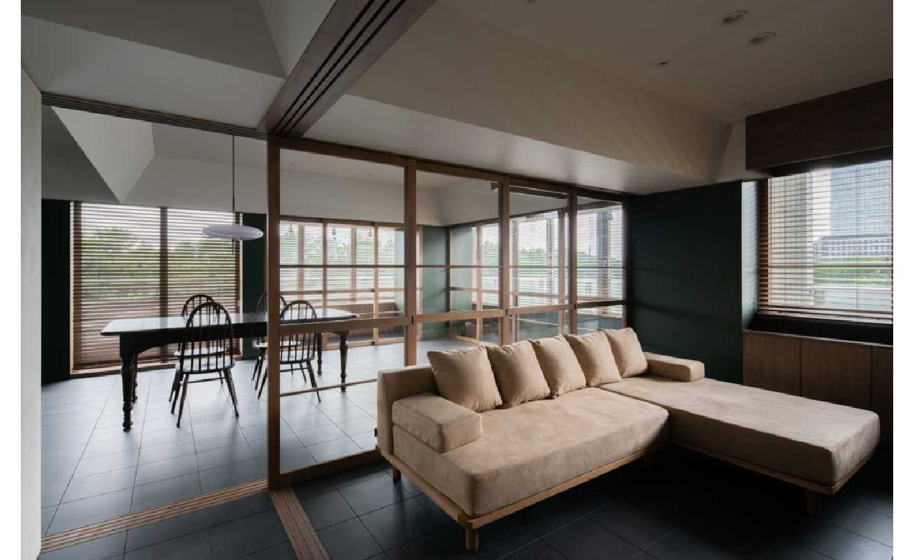 眺めを生かした和モダンLDKの二世帯リノベーション