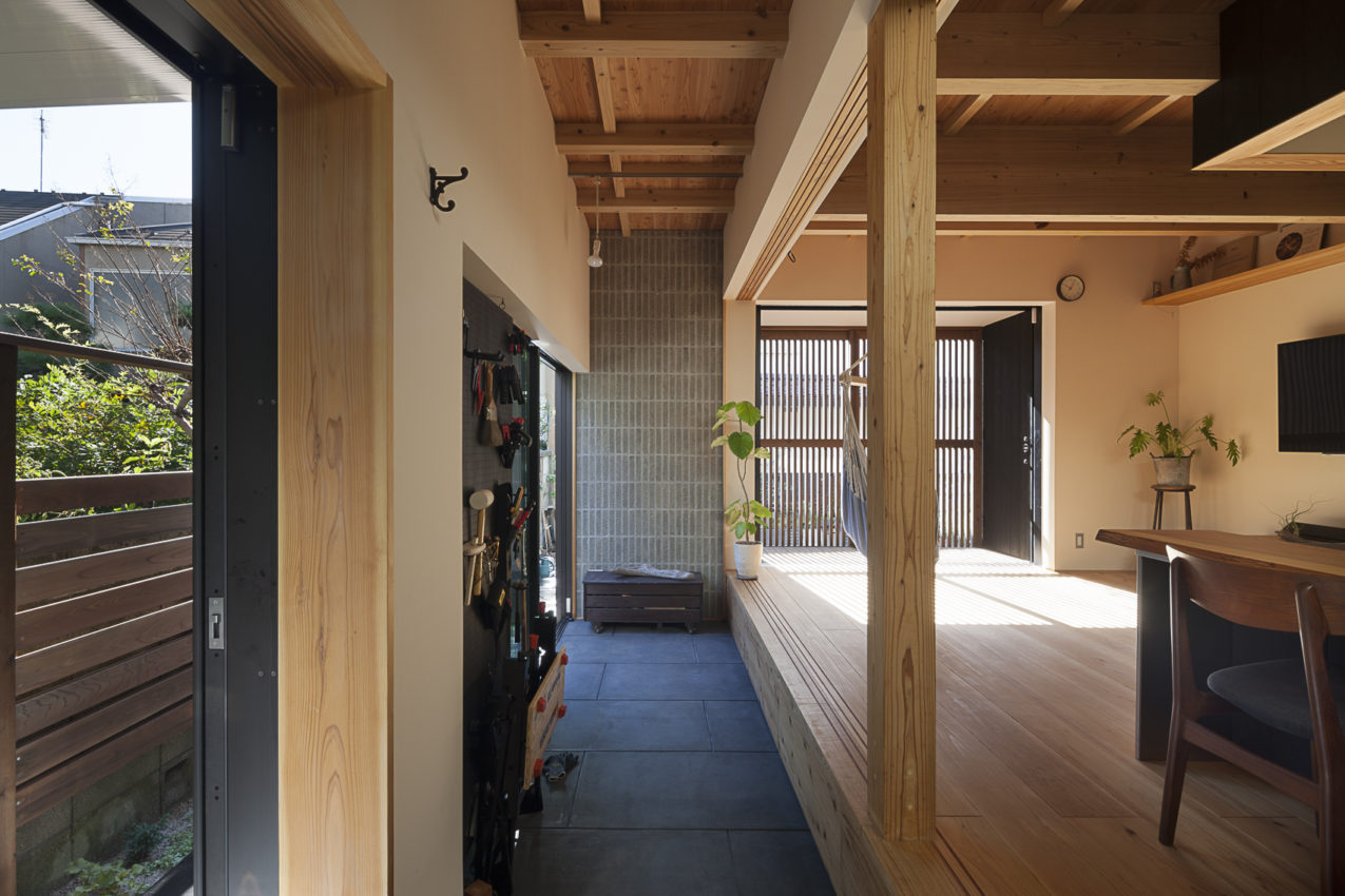 家の空間を一つにつなげる構造現しの天井