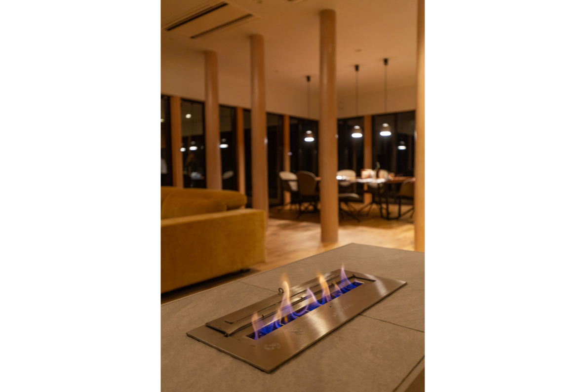そして、リビングの中心には、バイオエタノール暖炉を採用しています。サトウキビやトウモロコシなどのバイオマスを発酵させて製造した燃料を使用することで、一酸化炭素を排出せず、環境に配慮しています。自然豊かな屋久島に建つ住まいだからこそ、環境にやさしいエコな製品選びをしました。