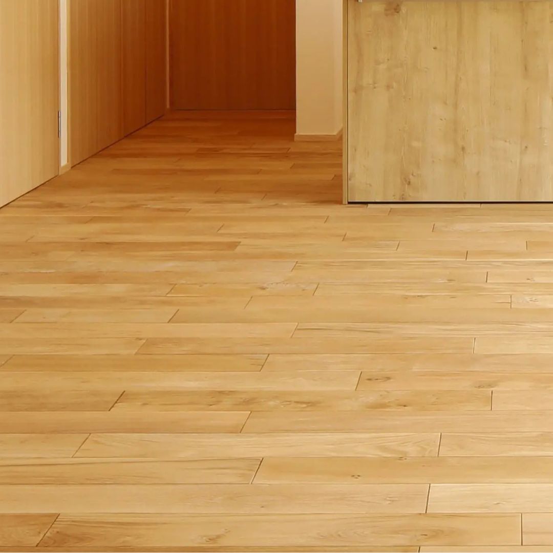 外観は焼杉で仕上げ、周囲の田園風景に溶け込むようデザイン。ご主人の「なるべく自然素材を使いたい」というご要望から、1階はオーク、2階はヒノキの床材を選定しました。
