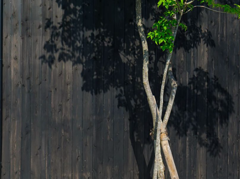 植栽計画もアプローチに向けて緑のトンネルをつくり、外壁に揺らぐ一本の木の影が日常の表情を豊かにしています。さらに室内のロフトから繋がる物見台を設け、裏の畑や山並みを眺められる小さな仕掛けとして暮らしに遊び心が加えられています。