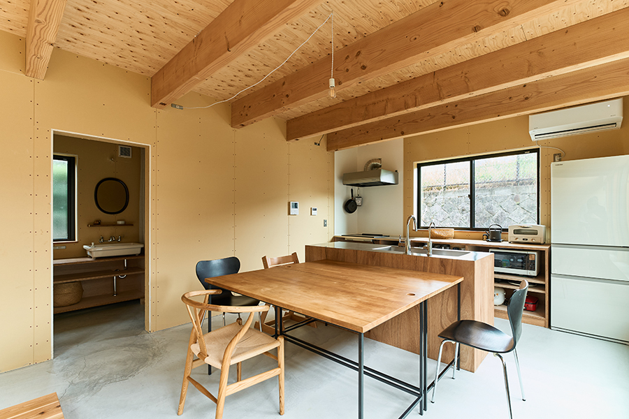 将来的に布やカーテンなどを垂らして仕切ることができるように、柱・梁の位置を決めました。