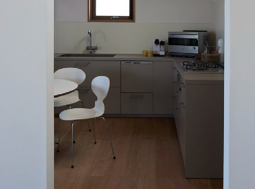 白い外観と水平に伸びる構成は、海辺の風景に静かに溶け込みながらこの場所ならではの暮らしを穏やかに包み込んでいます。
