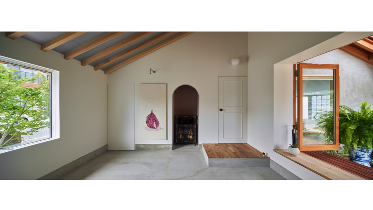 一方、表動線にあたる玄関は中庭へとつながる開放的な空間です。