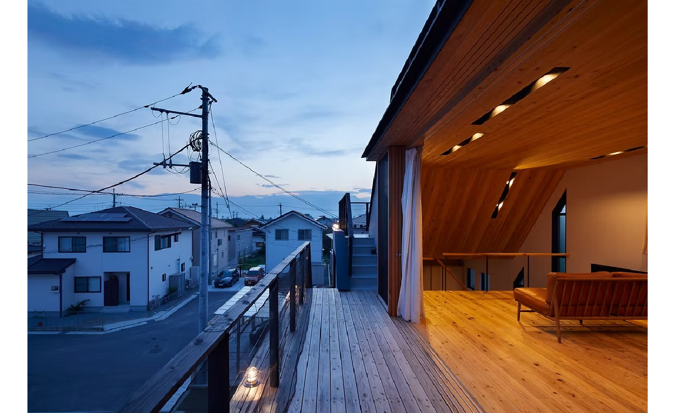 夫婦と4人の子どもが暮らす「大地の家」は、富士山を日常の中で感じながら暮らすことをテーマに計画された住宅。お施主さんの特徴的なご要望は「小さなベランダはいらない。富士山を見ながら過ごせる、大きなバルコニーがほしい」でした。