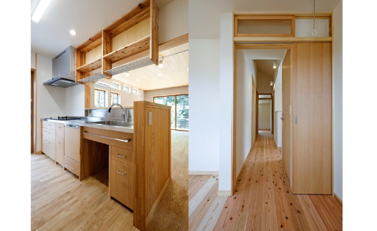 自然素材、太陽熱、雨水、そして手仕事。環境に配慮するという選択を、特別な行為にせず、日常の心地よさとして組み込んだ住まい。森とともに暮らす時間が静かに積み重なっていきます。