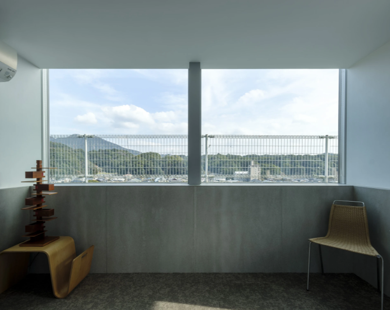 街並みが望め、夜には住まいのひとつひとつの明かりに暮らしの気配を感じます。時間の流れがぐっと早くなり、街の営みを感じる景色が広がります。