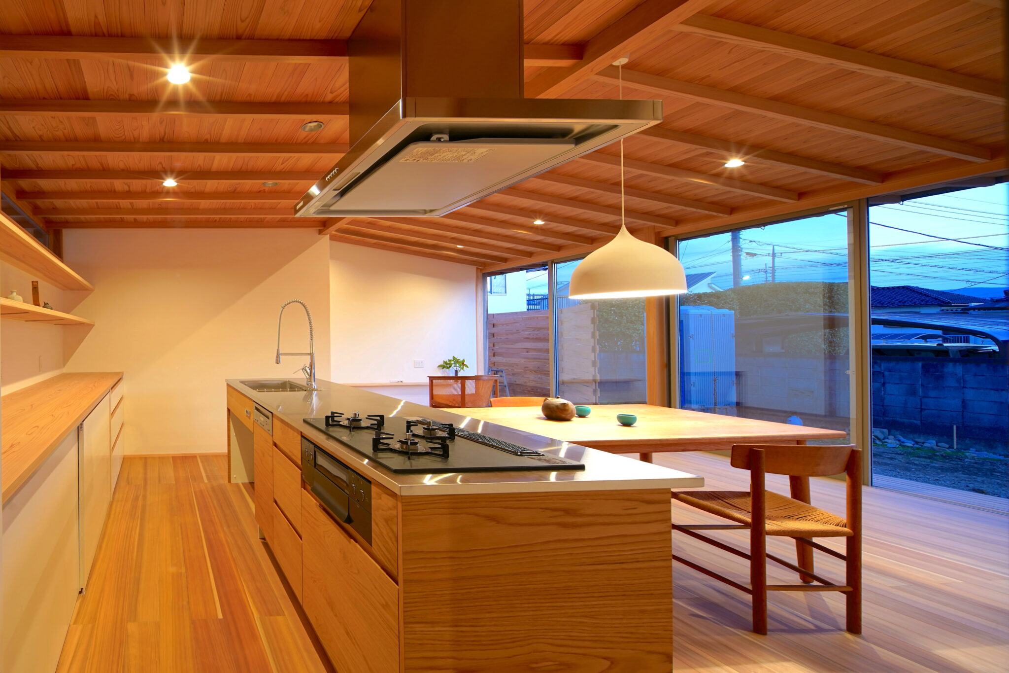 この住まいでは日本の古建築でも使われていた「 竿縁 さおぶち 」とよばれる天井を現代的にアレンジ。 一般的な天井のように下から釘やビスで固定しないため、大きな地震などでも落下しにくく、長年安定しやすいのが特徴です。