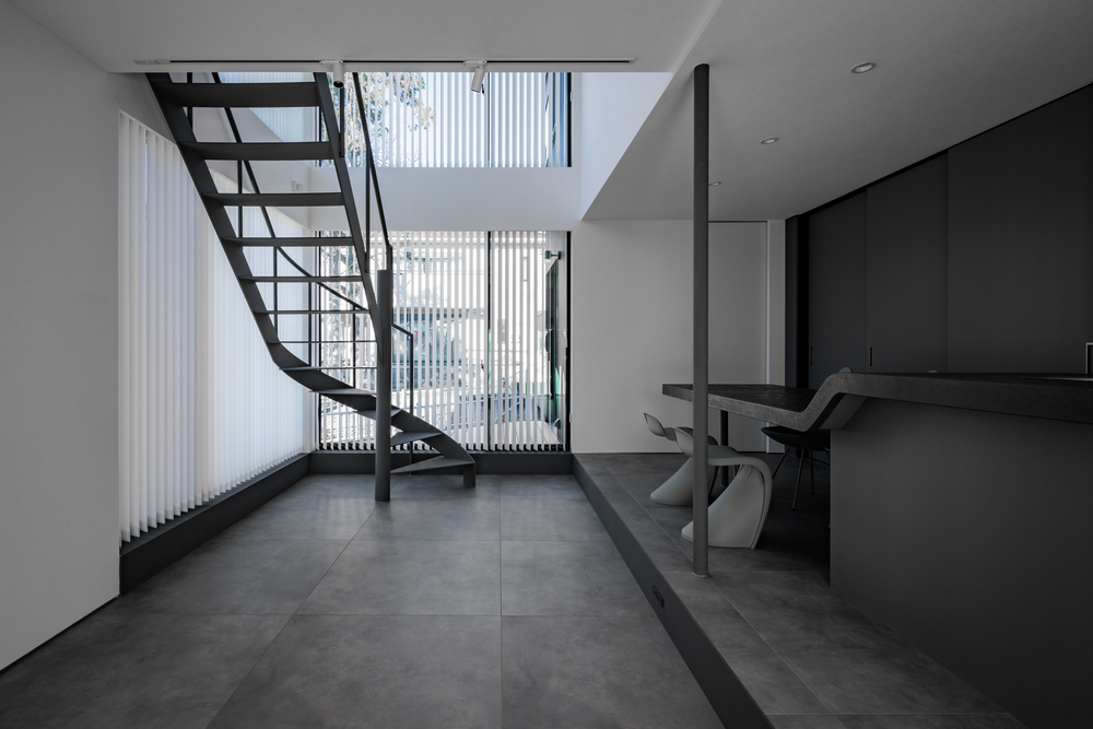 また、大開口を通して背の高い木や空を借景することで、自然の要素を間接的に取り入れています。