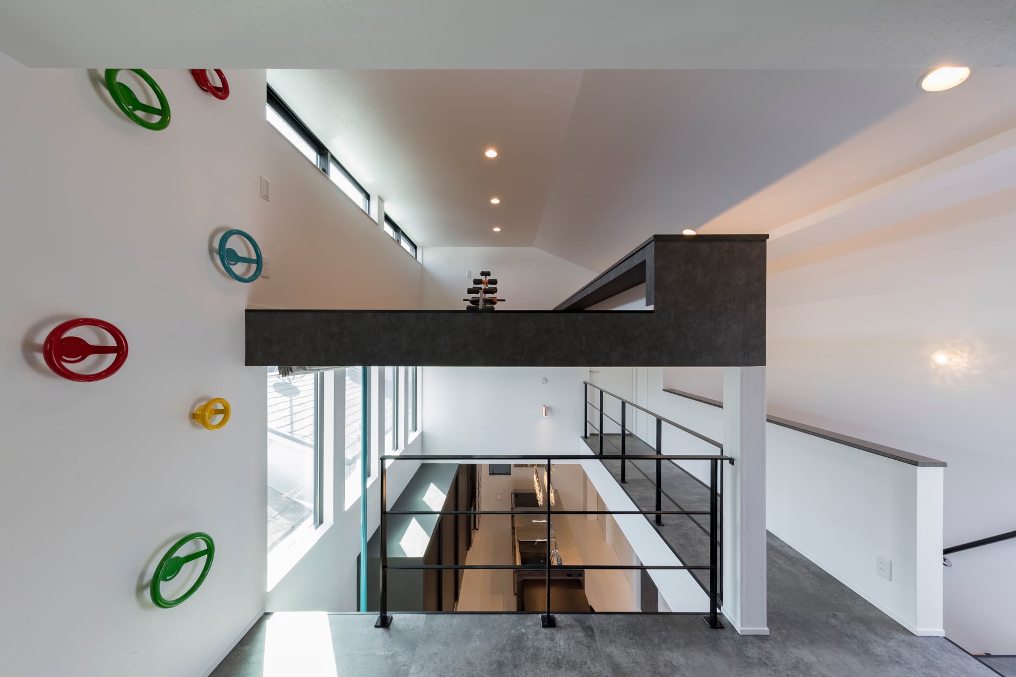 その名の通りアスレチックができる家です。これは施主であるご主人の要望で生まれた設計です。施主の方はとても楽しい方で、ご要望を活かして遊び心満載の家になりました。