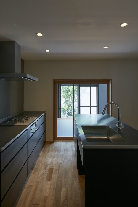 陶器の文化が残る歴史ある街の瓦屋根が美しい平屋の住宅。その雰囲気を大切にした住宅のキッチンです。