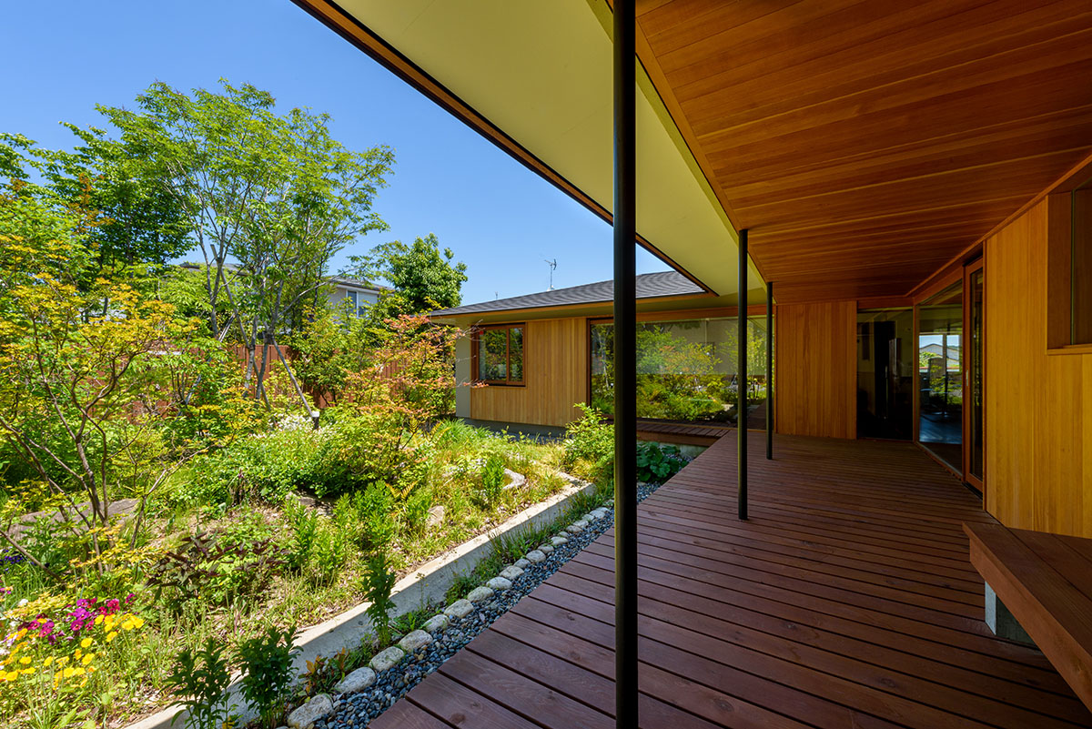 そこで施主の住まいの緑とつながる庭を、とても広くつくりました。