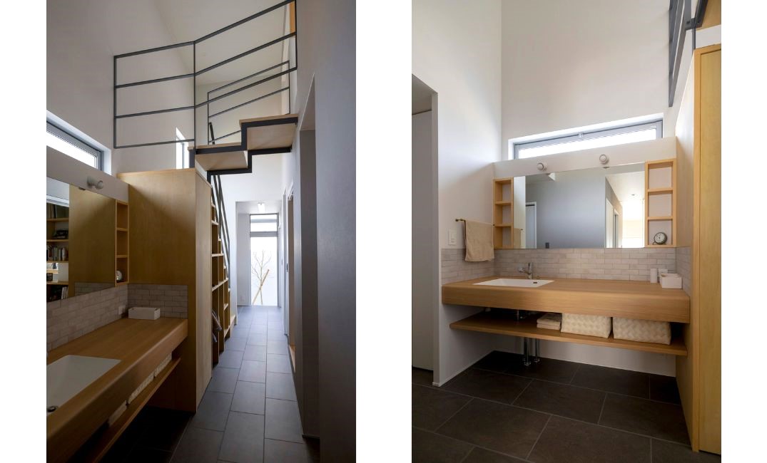 その中で施主の方の希望もあり、目が届きながらも、お子さんが自分の身支度はできるだけ自分で行うための収納や、勉強や作業に集中できる居場所となる学習スペースを設けました。お子さんの自立心を養って行けるような工夫です。