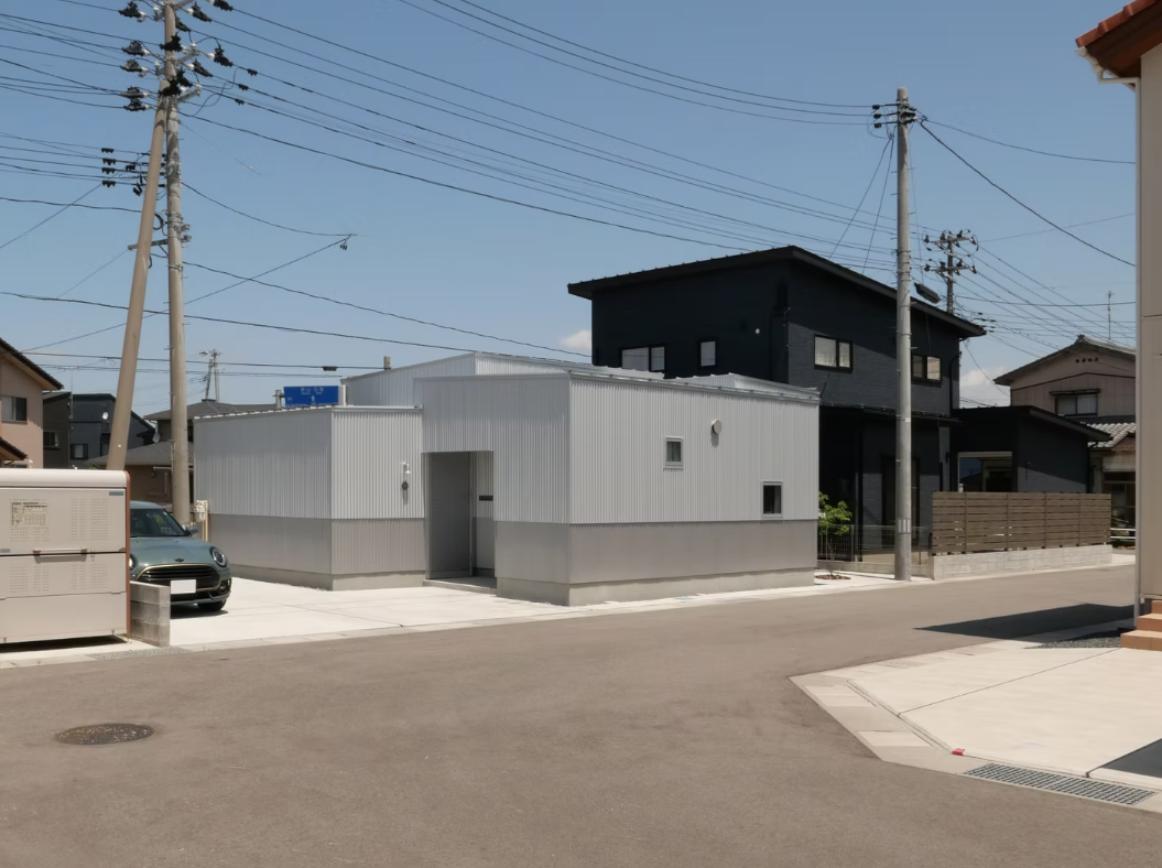 加えて、建物の正面はカーポートの影になる。その表情は、冬季の寒さと薄暗さをじっと耐えているように見えた。利便性の高いカーポートと、経済的に合理的な住宅製品による街並みである。