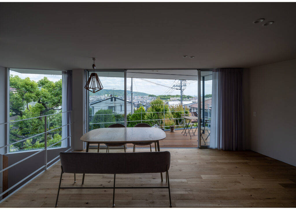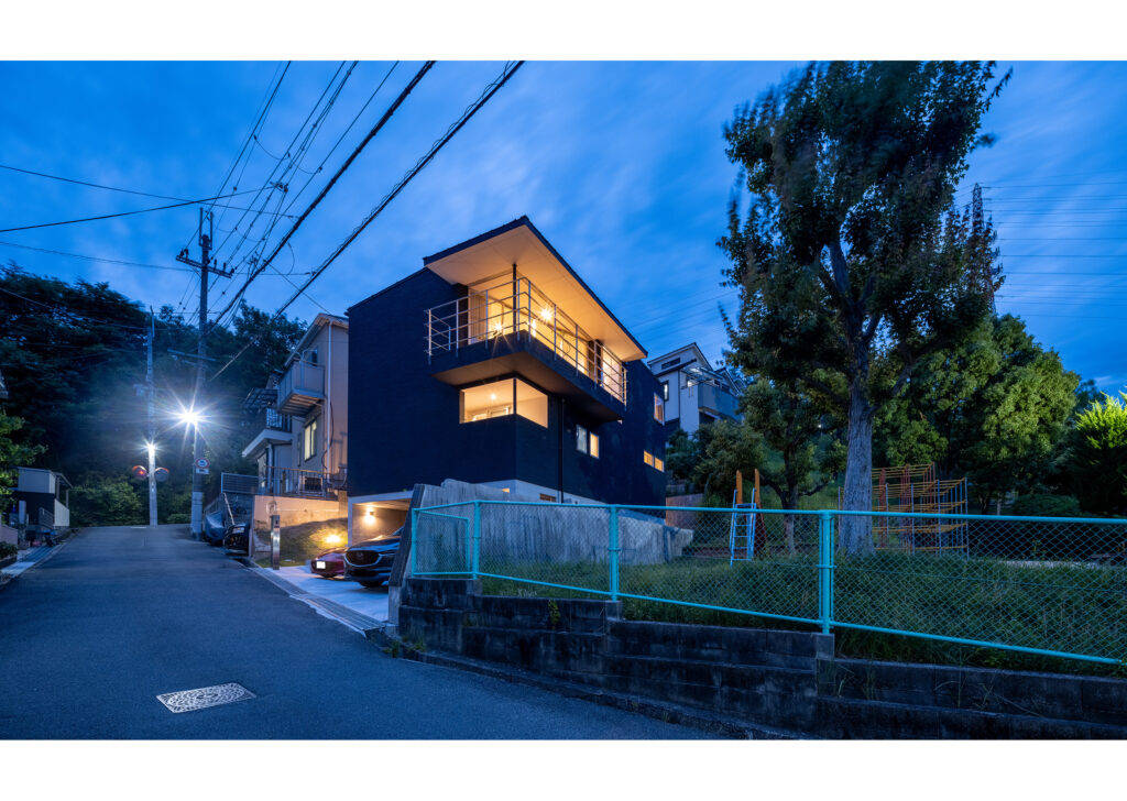 1階には寝室や水廻りなどプライベートな空間と音楽スタジオを配置、2階に設けたLDKと子供室からは街を一望しつつ、四季折々変化する公園の緑を間近に楽しむことができます。