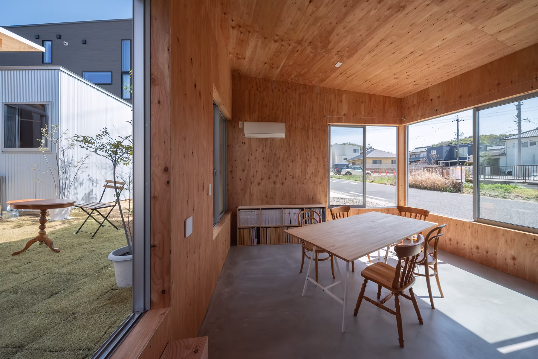 周囲に見られるミニ開発の行く末は、個々にプライベート化された住宅群と移動に特化した道路空間である。集会所という地域コミュニティの場に隣接するこの住宅がまちに溶け出すことによって、住宅地を解きほぐし、コミュニティのある界隈を持続する一端を担えればと考えている。