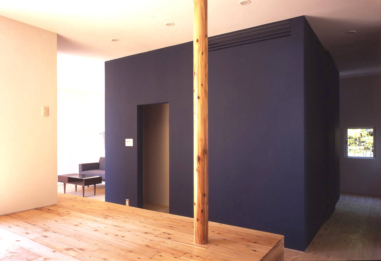 その中央にキッチンとクロゼットの入ったblue boxを配しています