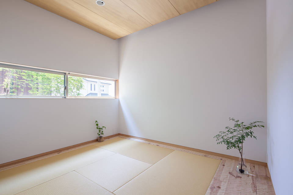 屋根にはスリット状のトップライトをとり、LDKだけでなく、北側の洗面室や趣味の部屋も自然光が入ります。