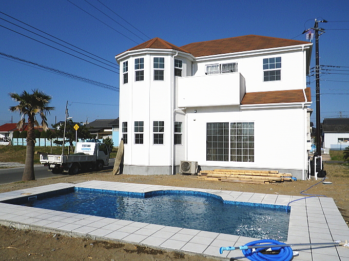 プールには「日暮ホームプール」による完全オーダー製プールを採用。