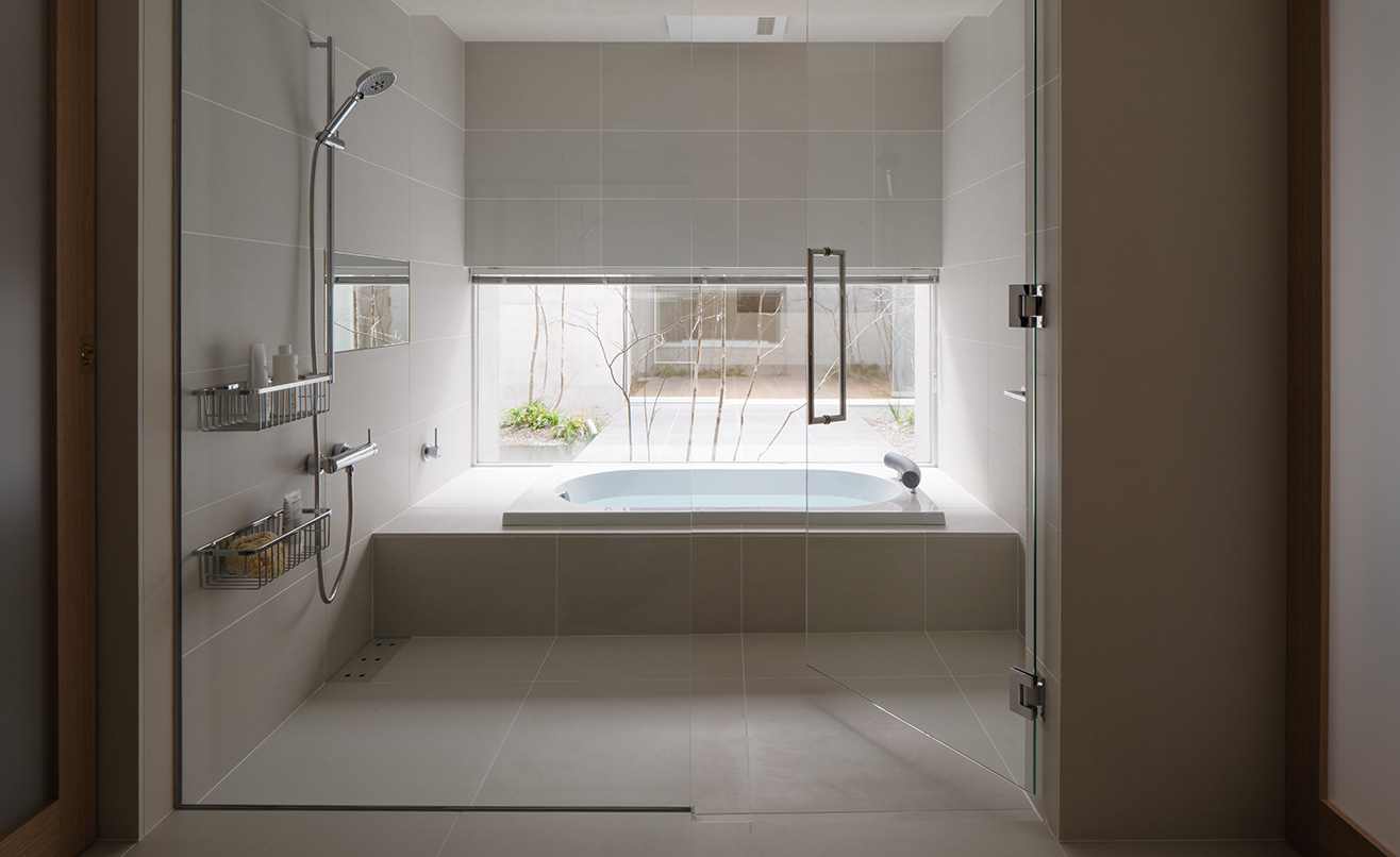 ややつや消しのマットタイルは、今回の住まいのように土間のような雰囲気を出したいときにもおすすめです。光の加減によって、グレーにもアイボリーにも見える繊細な色味が特徴で、空間にやさしい陰影が生まれます。