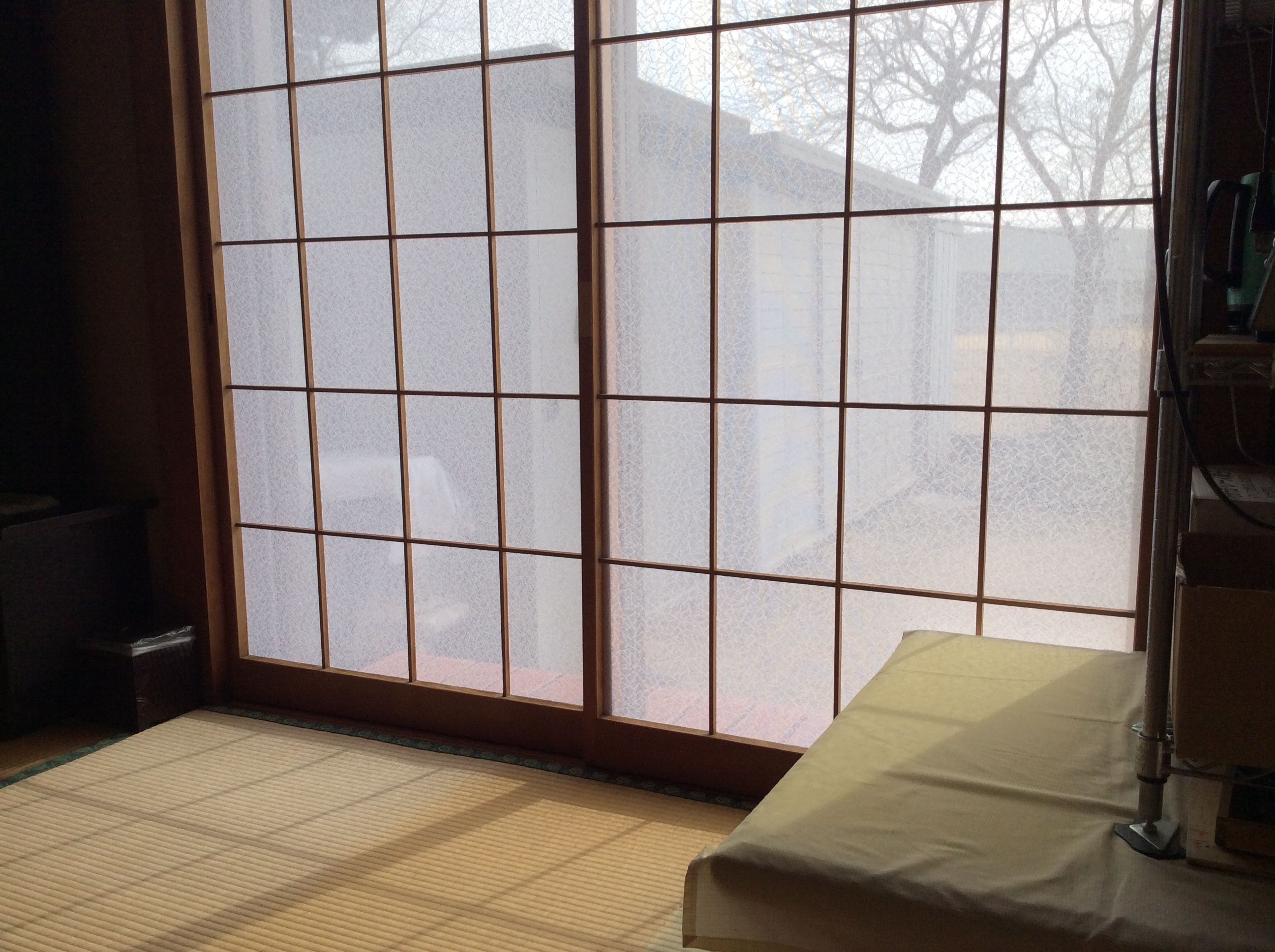 網戸の代わりにレース障子を採用しました。