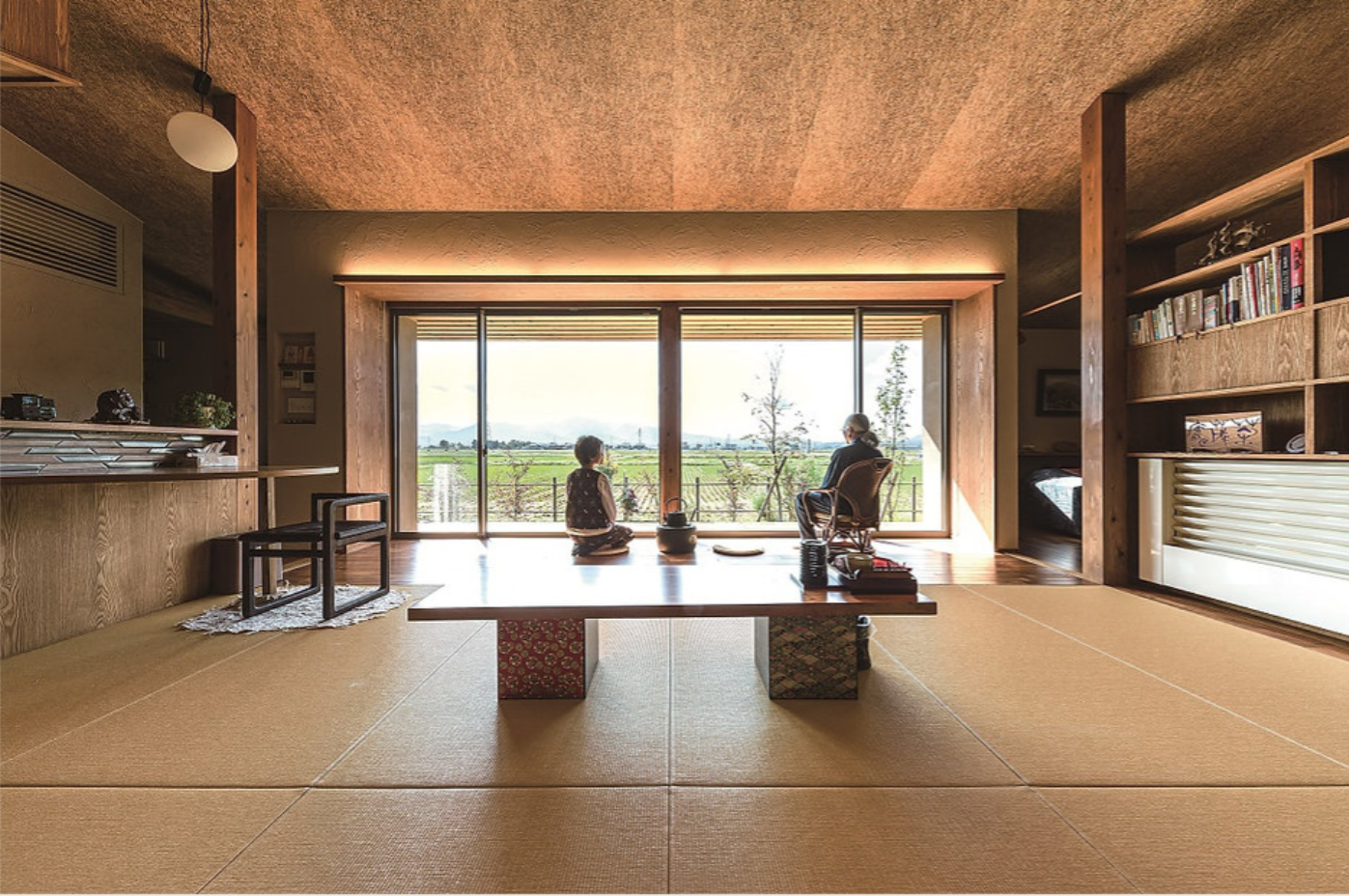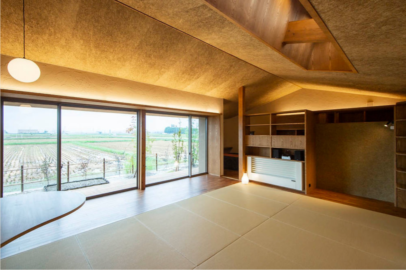 イグサボードを使用した天井は、消臭、調湿性を持ちながら、イグサの優しい香りがします。また、吸音性も持つため、楽器を弾くご家庭にはおすすめです。