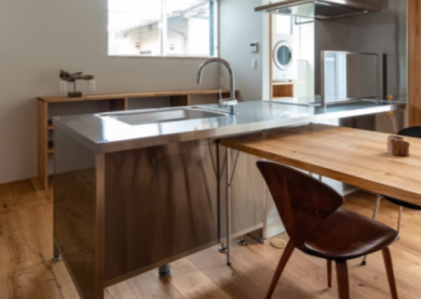 この住まいは、細長い敷地の特性を最大限に活かし、視線の抜けや立体的な空間構成を工夫することで、広がりを感じる住まいとなっています。