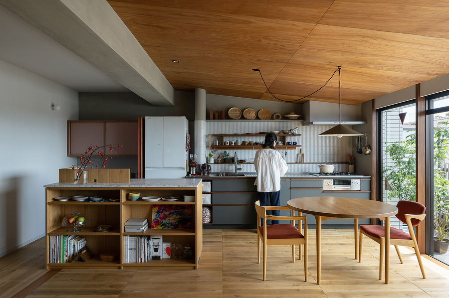 主室となるLDKは、リビングダイニングであり、子どもの遊び場であり、それぞれの居場所でもあります。限られた面積のなかで「どのように居場所をつくるか」…閉じた個室ではなく、小さな居場所がゆるやかにつながりながら一室空間を構成するアイデアが詰まっています。