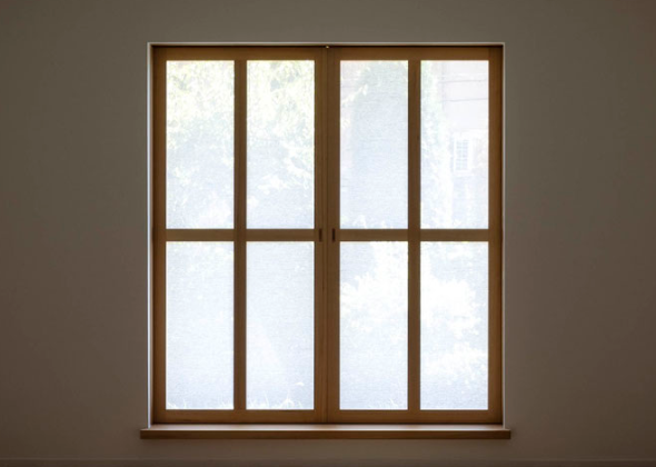網戸の代わりに採用した、折り込んだ和紙を張った「障子網戸」からは、柔らかな質感の光と適度な風が感じられます。通常はサッシの外側に設置する板戸を、今回はあえて内側に設置することで、レース状の網戸障子と板戸を組み合わせ、光の調整やプライバシーの確保を可能にしました。