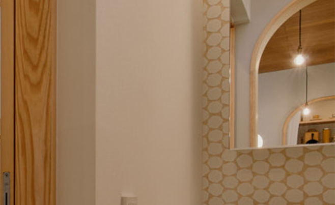 丸みを帯びた曲線は、ただの通路ではなく「くぐる」という動作によって場面が緩やかに切り替わる感覚をつくり、日々の暮らしにリズムを生み出している。