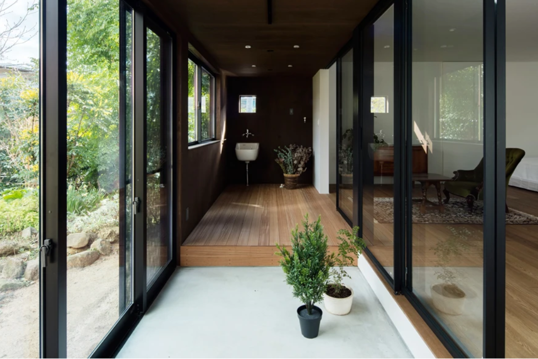 こちらの住宅は、ガーデニングが好きなお施主様。車いすや移動ベットが入るよう、玄関を大きな土間へ変更。段差にも配慮した設計になっています。