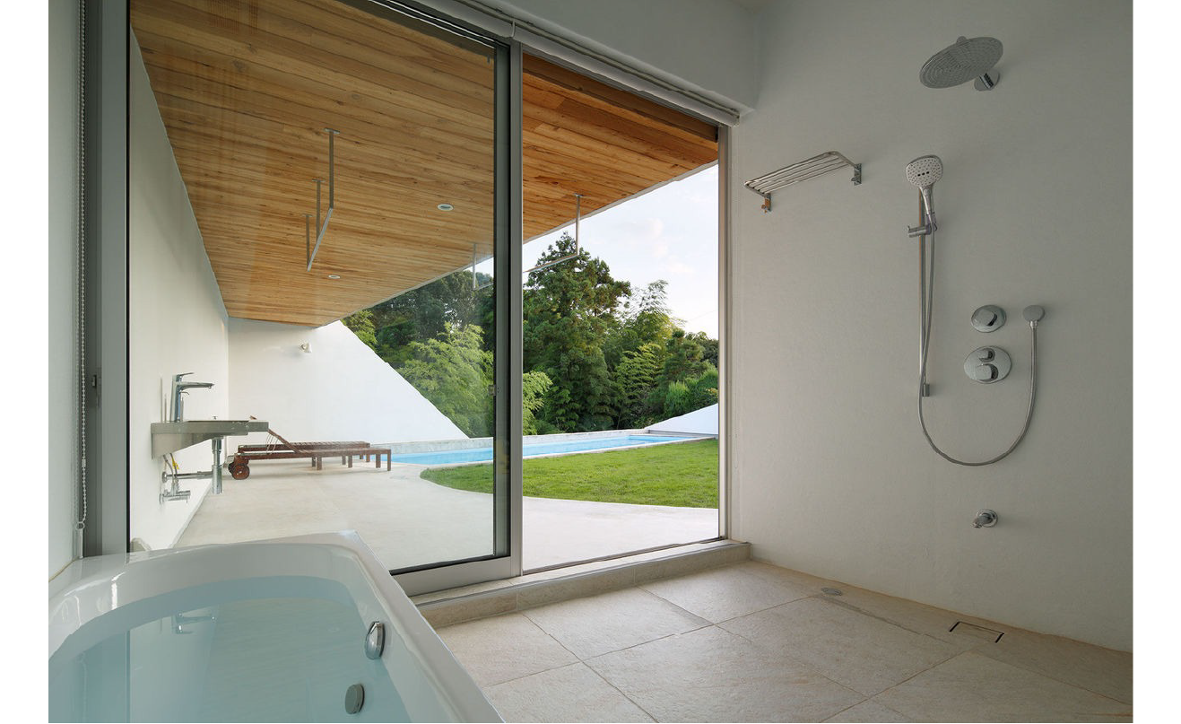 浴室やテラスも屋外とゆるやかに接続し、リビングを土間のように仕上げるなど、内と外の暮らしが連続する仕掛けが随所に施されています。