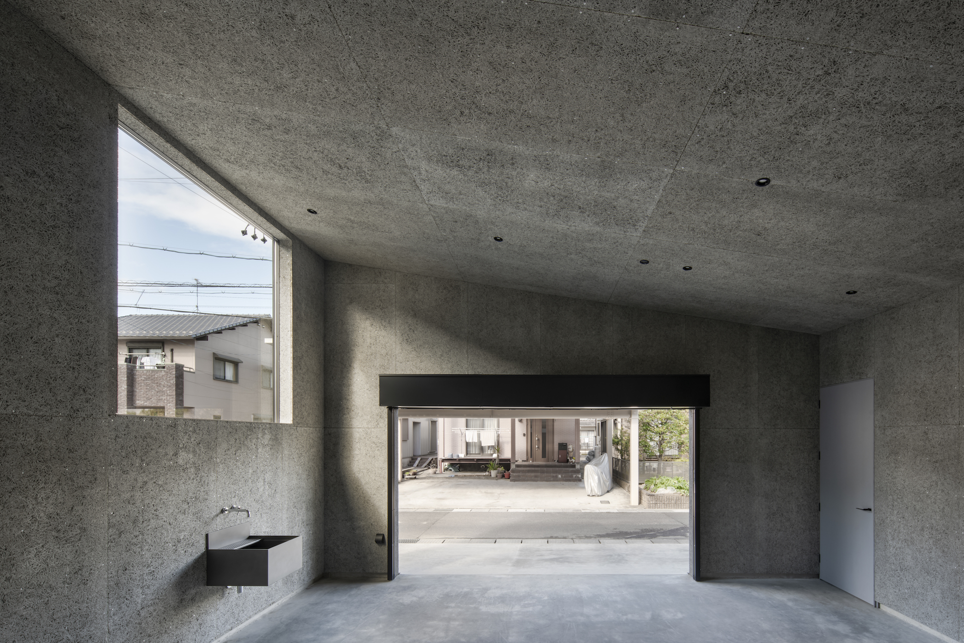 そして勾配天井で高さを確保したリビングの前にひらかれた土間空間。コンクリート仕上げの土間は庭のような性格を持ち、外と内のあわいとして暮らしに多彩な表情をもたらしています。