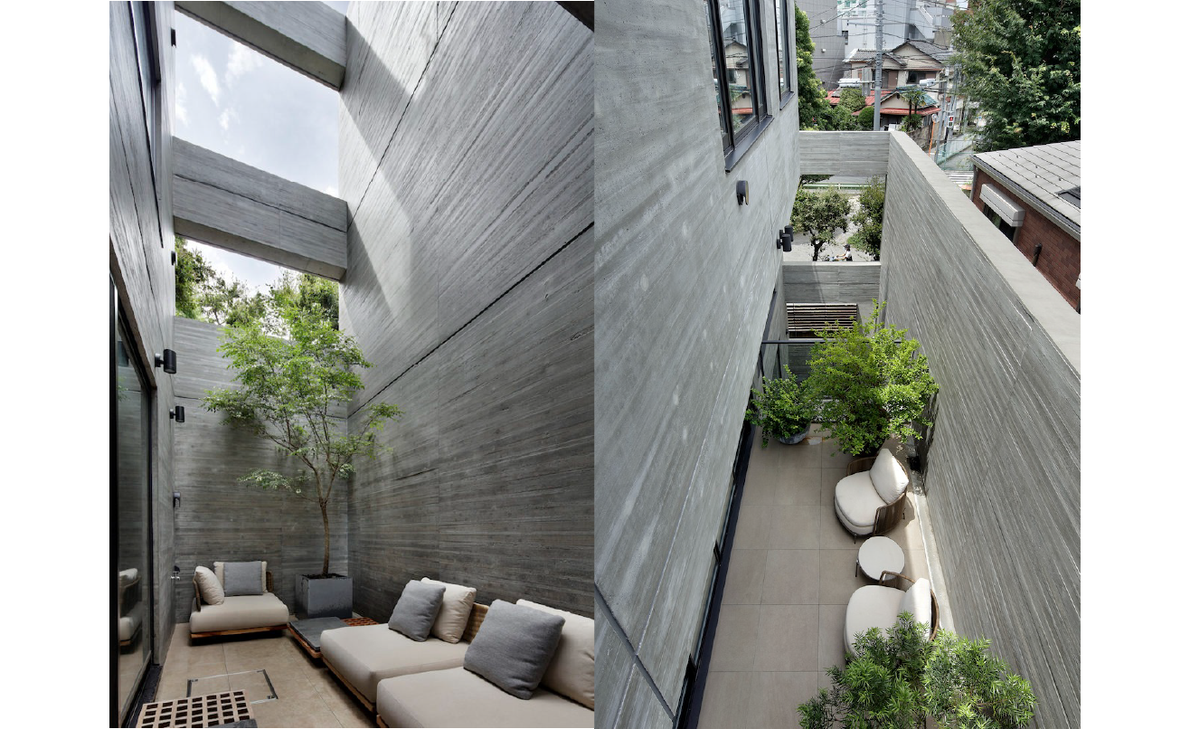 ここに向かって大開口やテラスを段状に配置し、地下から屋上まで光と風が貫く立体的な構成を生みました。