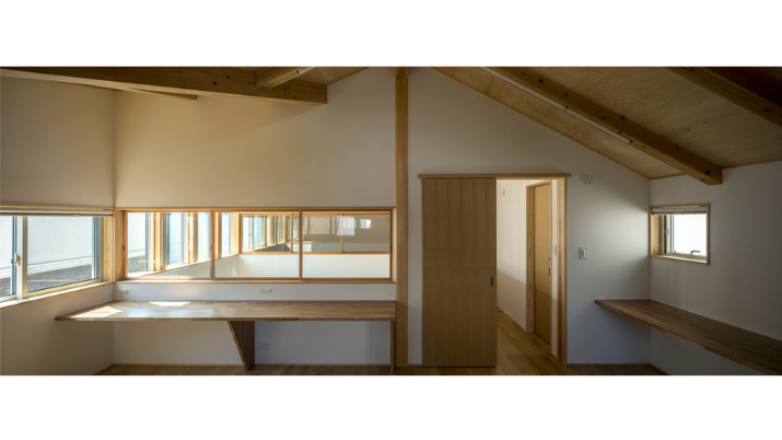 部屋という単位ではなく、家全体をひとつの建築として考え、個室を持ちながらも、ワンルームのような緩やかなつながりをもたせました。