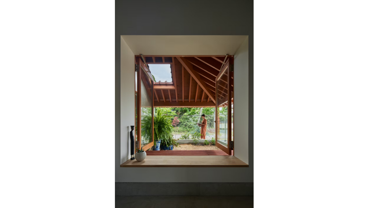 一方、表動線にあたる玄関は中庭へとつながる開放的な空間です。
